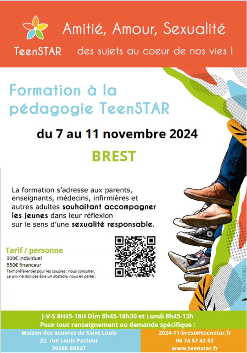Une formation Teenstar est proposée pour les parents ou enseignants et encadrants qui veulent aborder les sujets de l’amitié, de l’amour, la sexualité aux jeunes.