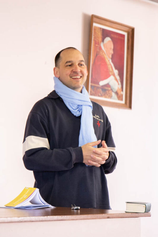 Temps fort de la journée, la célébration d’ouverture à l’église Sainte-Bernadette côté carmel. Pendant la procession dans laquelle chaque groupe était représenté, un groupe de jeunes a proposé une chorégraphie sur l’hymne « Joyeux dans l’Espérance ». Une célébration festive qui a permis d’entrer encore davantage dans le thème du pèlerinage. « Quelque soit notre condition, nous continuons à construire notre chapelle, à grandir en sainteté », a commenté Mgr Dognin, dans son homélie. Comme en écho au topo de Jean quelques heures plus tôt, l’évêque a redit que « l’Église est une construction dont nous sommes les pierres vivantes. Notre pèlerinage est une belle image de cette construction. Il faut creuser très profond pour poser les fondations, c’est-à-dire faire que notre vie soit vraiment habitée par le Seigneur, qu’elle témoigne de notre foi au milieu du monde. Cela demande d’enraciner notre vie dans l’Évangile ». Il a conclu en souhaitant que ce pèlerinage puisse être l’occasion « d’approfondir les fondations de notre maison personnelle et de notre Église diocésaine. Nous sommes invités à grandir dans la foi et dans la sainteté, tout en étant joyeux dans l’espérance ».