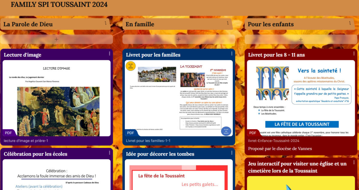 Familles, écoles, paroisses, venez découvrir le Family Spi de la Toussaint : des activités, des jeux adaptés à chaque âge, une célébration pour les écoles et plein d’autres choses pour vous préparer à la Toussaint !