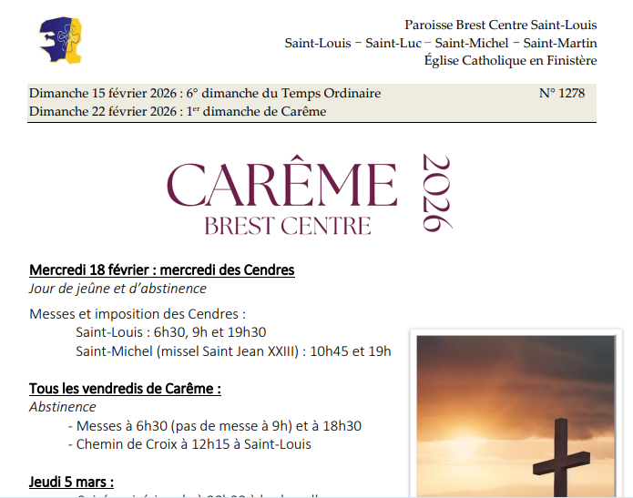 A noter l’entrée en Carême le mercredi 18 février.