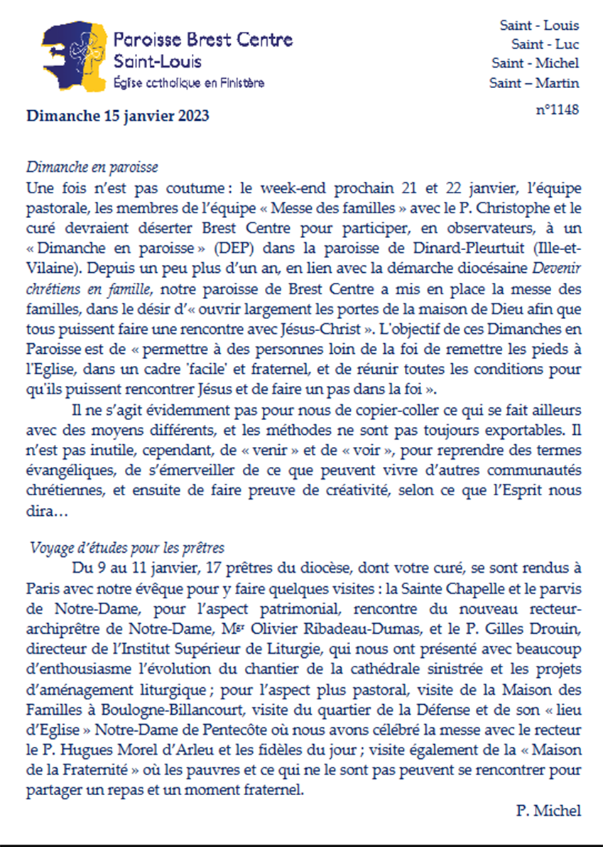 Vous trouverez ci-dessous la FIP du 15 janvier :
