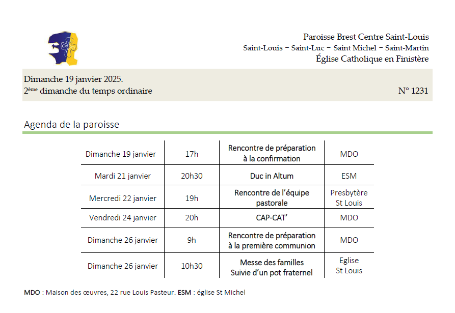 Veuillez trouver ci-dessous la FIP du 19 janvier :