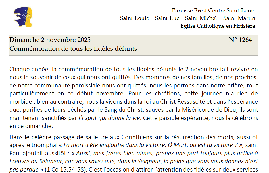Ci-dessous vous trouverez toutes les informations de la semaine du 2 novembre 2025 :