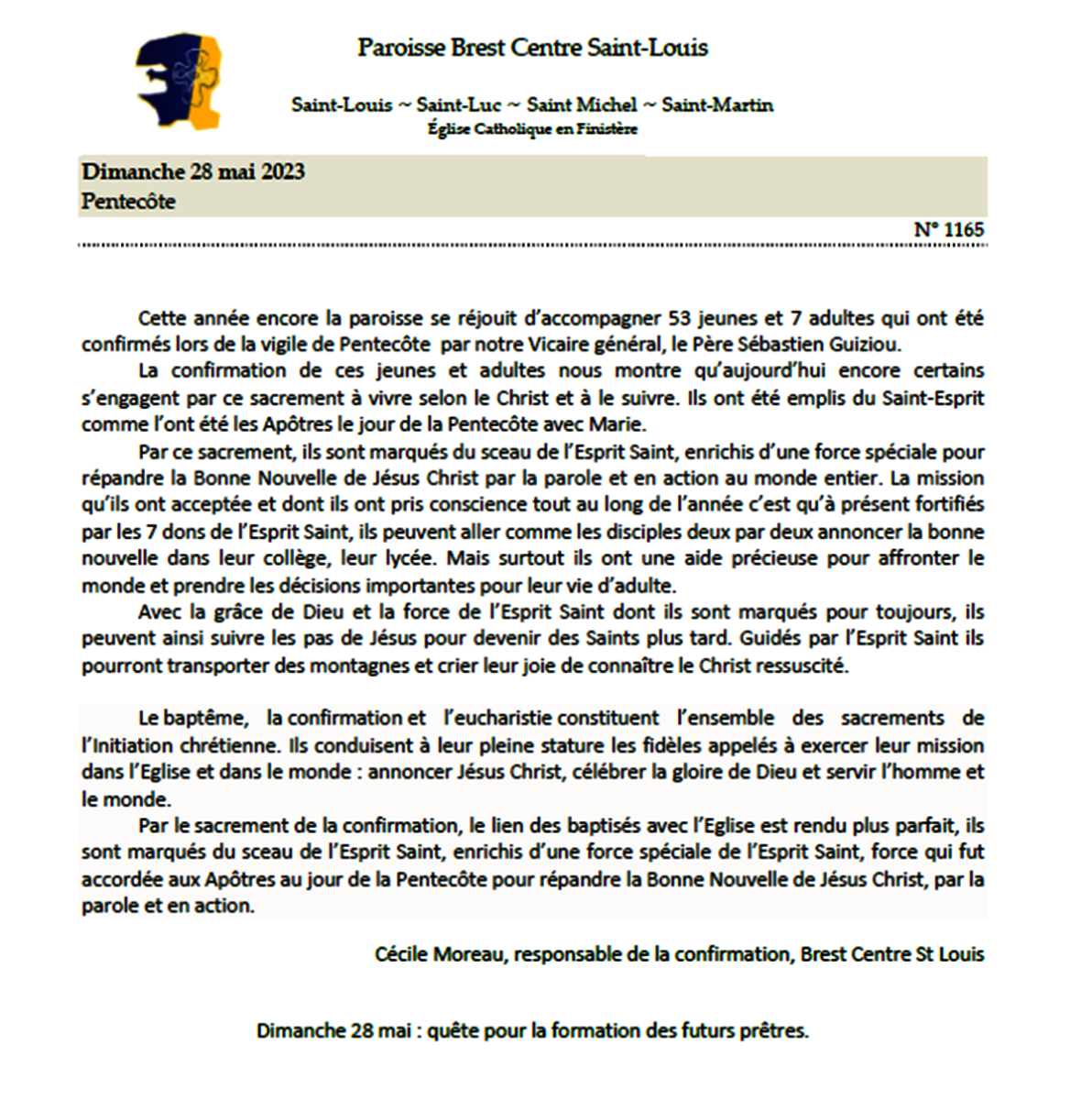 Vous trouverez ci-dessous la Fip du 28 mai. Bonne fête de la Pentecôte !