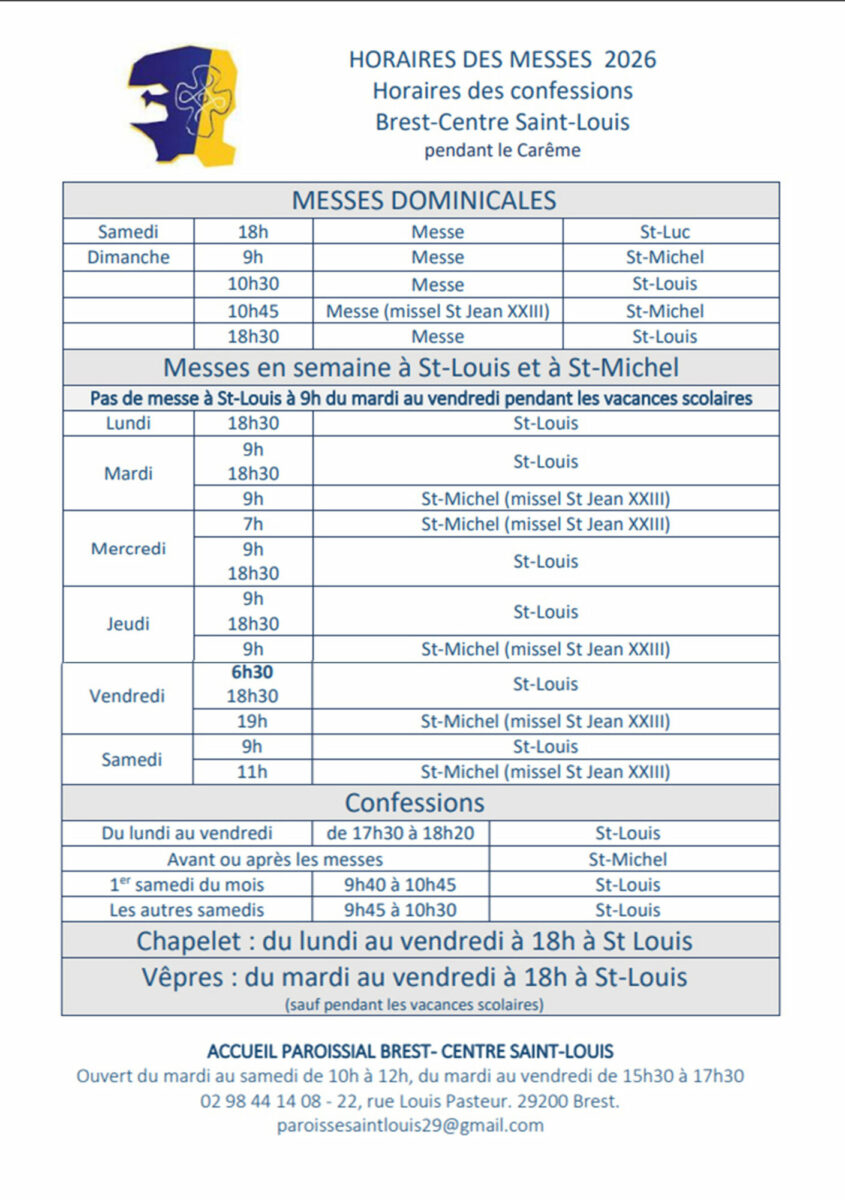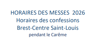 Veuillez trouver ci-dessous les horaires de messes et confessions pour la période du carême 2026 :