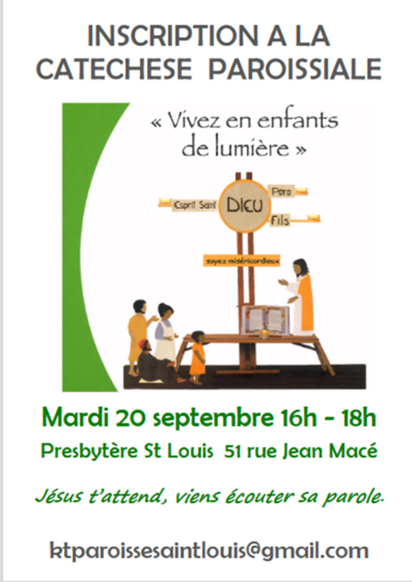 Inscription pour le catéchisme ce mardi 20 septembre de 16h00 à 18h00