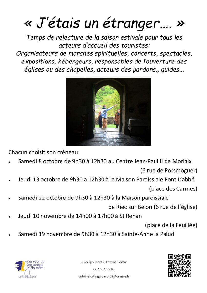 · Samedi 8 octobre de 9h30 à 12h30 au Centre Jean-Paul II de Morlaix (6 rue de Porsmoguer)