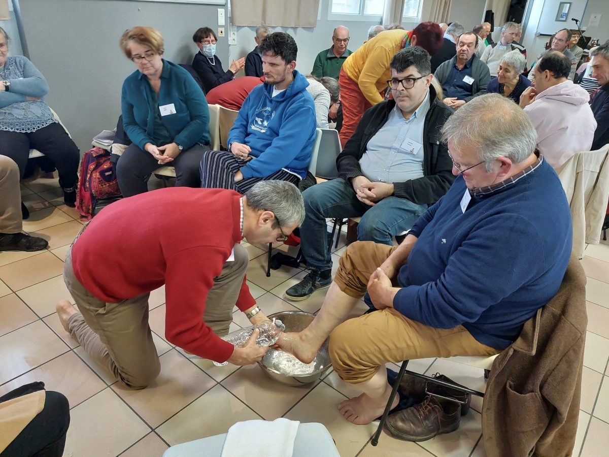 Voici quelques-unes des phrases exprimées par les 190 participants, lors de la journée fraternelle de la diaconie, hier à Châteaulin. Celle-ci a rassemblé des groupes de partage d’Évangile, de fraternité, de soutien local sur l’ensemble du diocèse, des personnes en périphérie, parfois en marge de la société, peu, voire pas écoutées au sein de l’Église. Nous avons échangé sur l’évangile du lavement des pieds, nous nous sommes rencontrés, nous avons partagé nos talents à travers des ateliers et nous avons célébré le sacrement du frère en nous lavant les pieds les uns aux autres, comme Jésus nous a demandé de le faire.