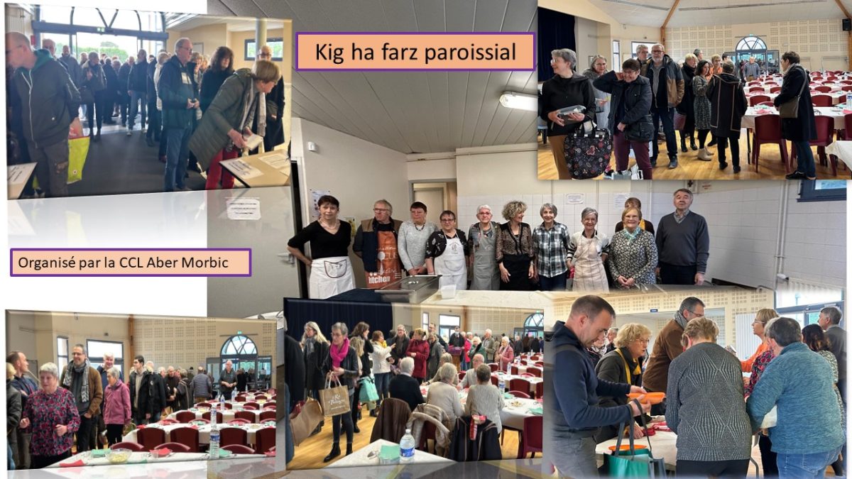 C’est dans une bonne ambiance que s’est déroulé le traditionnel Kig ha Farz paroissial, en ce dimanche 4 février 2024, organisé par la CCL Aber Morbic. Les clients étaient nombreux, venus des quatre coins de la paroisse, soit pour prendre à emporter, soit pour manger sur place. Les bénévoles (en cuisine, en salle) se sont démenés pour faire de ce repas un moment agréable pour les convives.