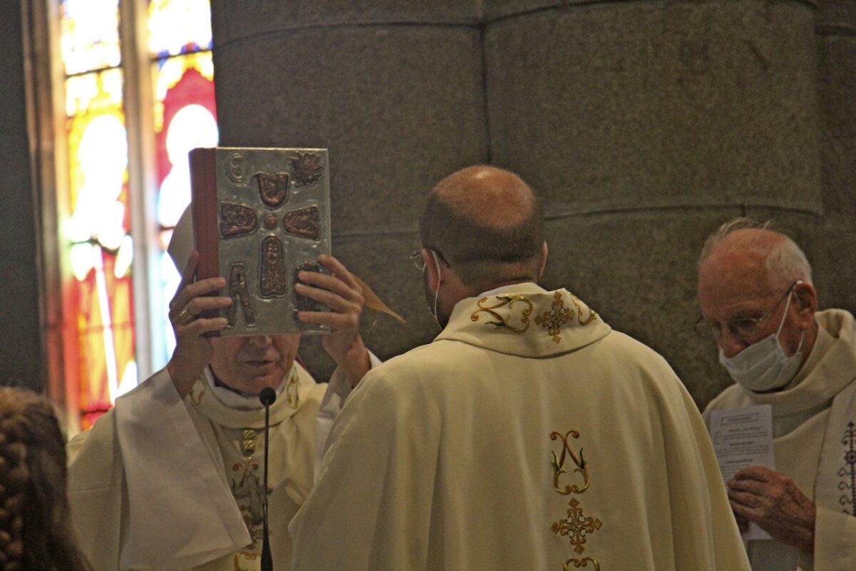 Après une belle procession représentant chaque communauté chrétienne locale, Dominique, au nom de l’équipe pastorale, a prononcé un mot d’accueil à tous. Le père Erwan a ensuite reçu les clés de quelques églises de la paroisse en début de célébration. Après l’alléluia, dans un geste très solennelle, l’évêque a remis l’évangéliaire au nouveau curé pour signifier l’importance de porter la parole de Dieu dans sa mission.