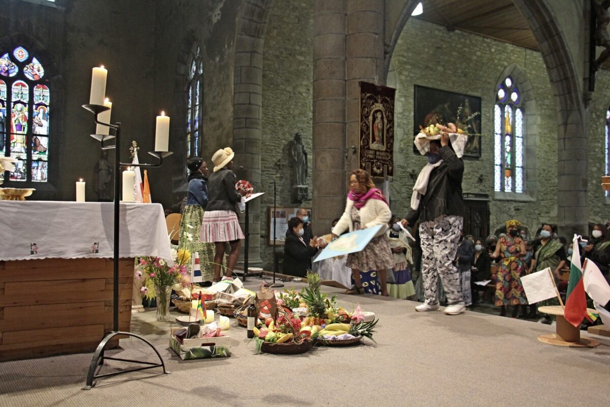 La Messe des peuples a rassemblé ce dimanche 24 octobre 2021, à l’église Saint Houardon de Landerneau, les communautés chrétiennes de tous pays : communauté portugaise, antillaise, africaine, arménienne, brésilienne, arabe. Les participants étaient vêtus de leur costume traditionnel.