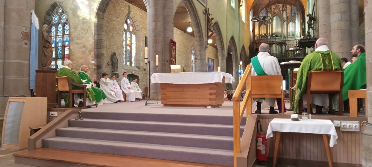 « Je veux vous encourager au nom du Seigneur. Vous, les paroissiens, vous êtes les sentinelles de la foi au sein de cette paroisse. Merci au nom du Seigneur pour votre fidélité, quel que soit votre âge. Vous êtes envoyés vers la population de cette région, ne l’oubliez jamais. Les prêtres et diacres, bien souvent critiqués… ou idéalisés. Alors que ce sont des hommes, avec leurs qualités (nombreuses), leurs limites aussi. Ils ont reçu une formation solide, ils sont pétris de la Parole de Dieu, de la prière, du concile Vatican II, y compris votre curé ! »