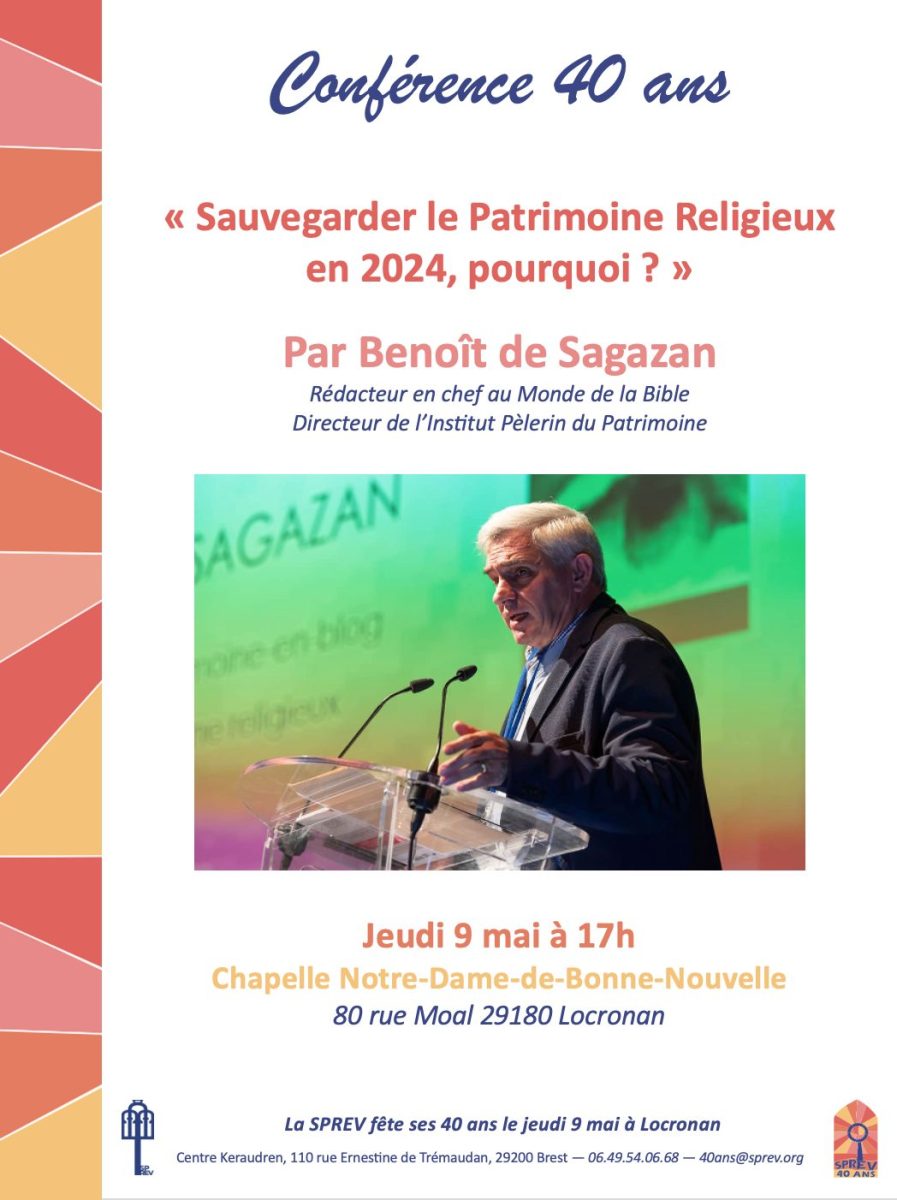 A cette occasion Benoît de Sagazan, rédacteur en chef au Monde de la Bible donnera une conférence : « Sauvegarder le patrimoine religieux en 2024, pourquoi ? «