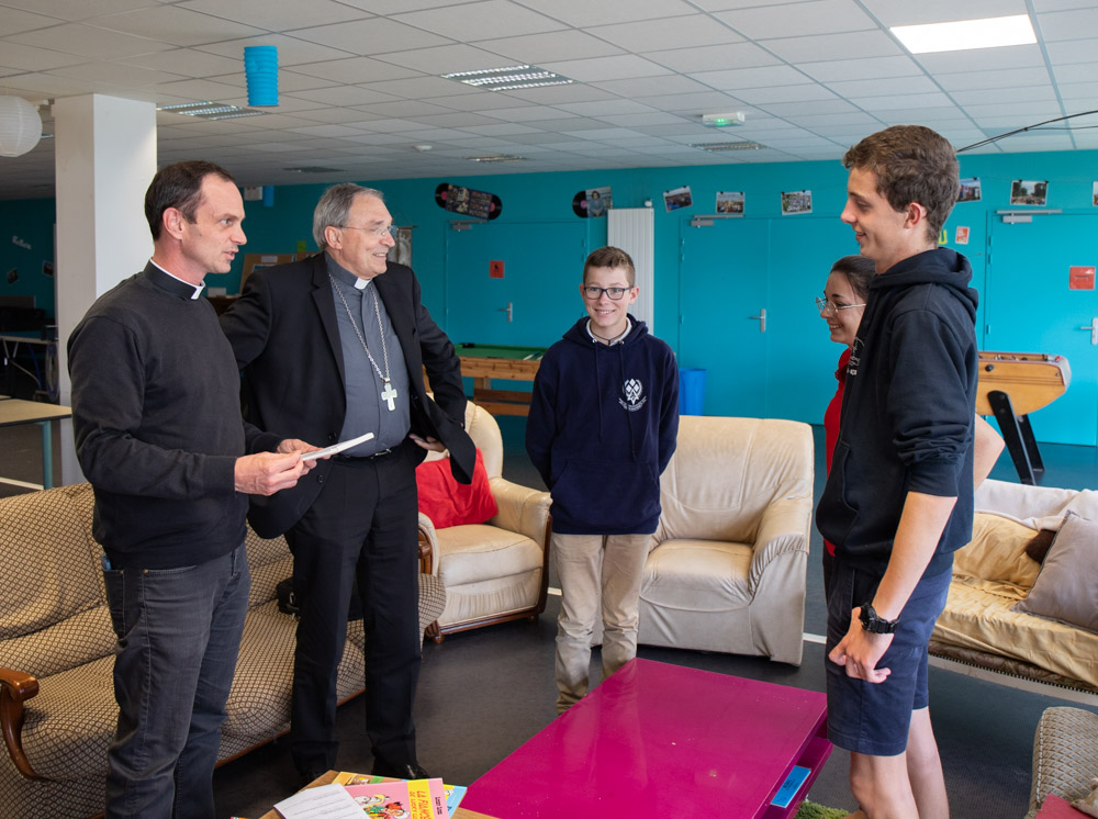 Lieu de vie où chacun peut grandir dans la foi, Mission Saint-Luc propose de nombreuses activités. Dans un temps d’échanges avec une dizaine de collégiens et lycéens, l’évêque de Quimper et Léon a pu entendre leurs témoignages. Chacun a pu partager une expérience vécue qui l’a marqué dans son chemin de foi. « Cette année, j’ai vécu les JMJ avec la communauté de l’Emmanuel. J’ai été propulsée dans une ambiance de foi incroyable », témoigne Camille. Pour Maël et Marie, ce sont les temps de rassemblement du scoutisme qui marquent leur vie de foi, tout comme les rencontres de l’aumônerie. « J’ai rencontré plein de personnes grâce à cela et je vis une vraie fraternité », partage la jeune fille, avant d’interpeler Mgr Dognin : « J’ai une amie qui s’éloigne de la foi car elle ne comprend pas pourquoi il y a tant de misère dans le monde alors que Dieu est là ». « L’humanité est marquée par le mal et la mort, a répondu l’évêque. Dieu nous aime et veut nous sortir de là. Il veut nous montrer le chemin de la vie. Jésus a donné sa vie pour nous et par ce sacrifice, il nous montre qu’il ne faut pas désespérer du mail. Il faut lutter et témoigner de notre amour. Nous devons suivre le Christ sur le chemin de l’amour. Il passe par nous pour manifester son amour au monde. »