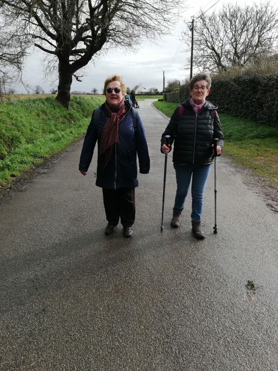 Ne vous fiez pas à cette photo : si Marie-Jo, Chantal et moi (qui prends la photo) sommes les trois seules MCR de Douarnenez ; un groupe d’une quarantaine de personnes marche avec nous.
