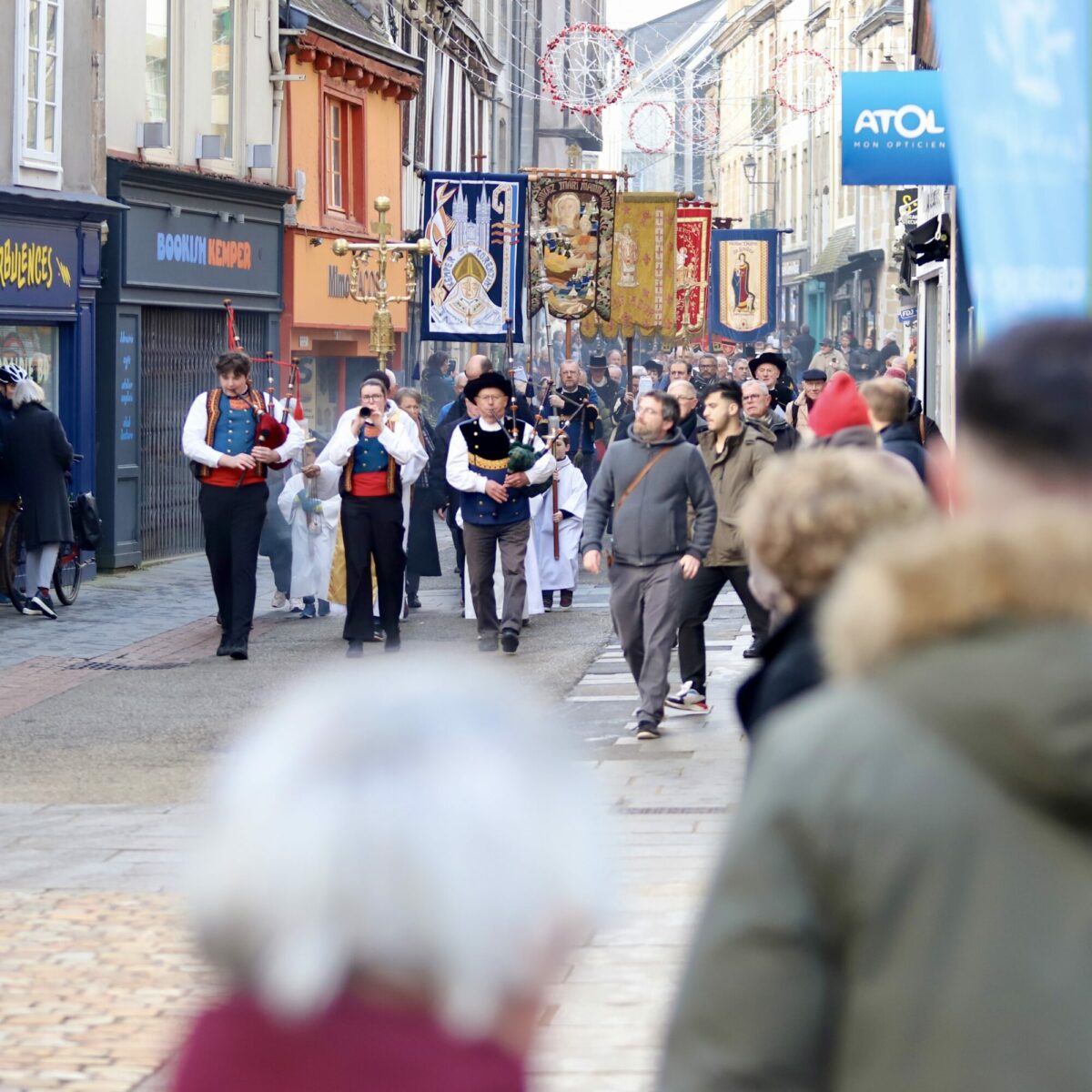 La procession s’est terminée à la cathédrale Saint-Corentin, où une messe a été célébrée en présence de plus de 1200 personnes et présidée par Monseigneur Laurent Dognin, évêque de Quimper et Léon.
