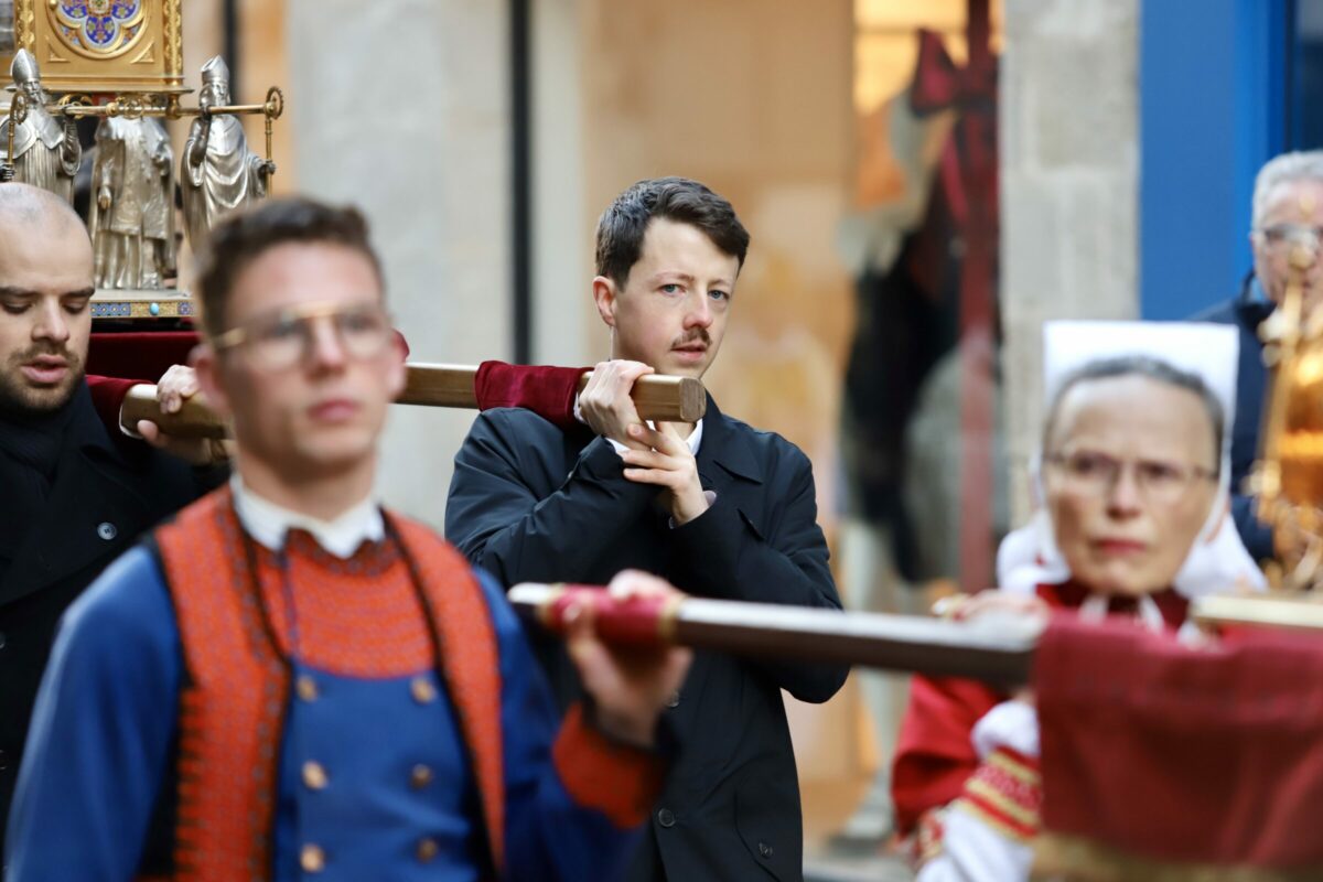 Le pardon a commencé par une procession qui a rassemblé plusieurs centaines de fidèles dans les rues du centre-ville. Des bannières, des croix et les reliques de saint Corentin ont été portées en tête du cortège, marquant un moment de prière collective et de recueillement.