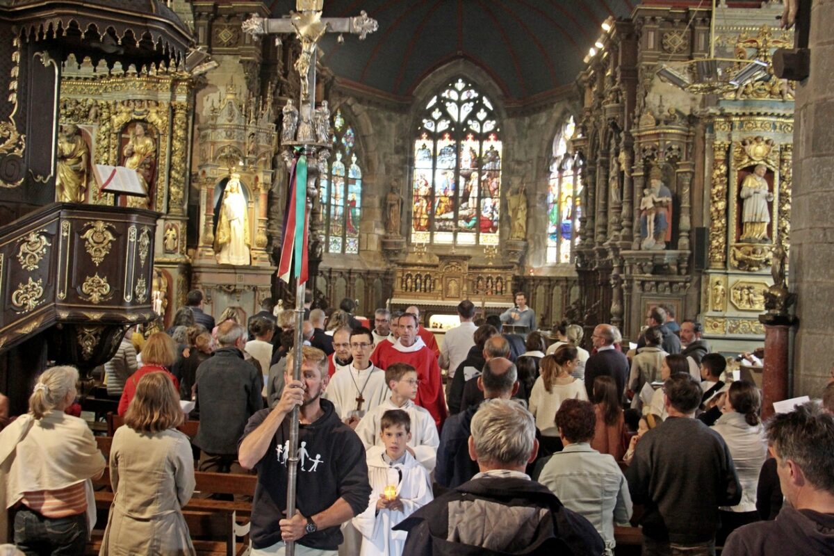 Le samedi matin, Mgr Dognin a rejoint le groupe à la chapelle Notre-Dame du Folgoat pour participer à la deuxième étape de seize kilomètres vers Rumengol. Après une courte pose à l’église Saint-Sauveur du Faou, les pèlerins sont arrivés en fin d’après-midi au sanctuaire Notre-Dame de Tout-Remède.