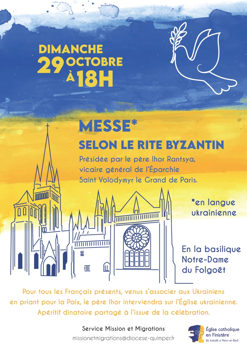 Dimanche 29 octobre, à 18h, en la basilique ND du Folgoët, messe (en langue urkainienne) selon le rite byzantin.