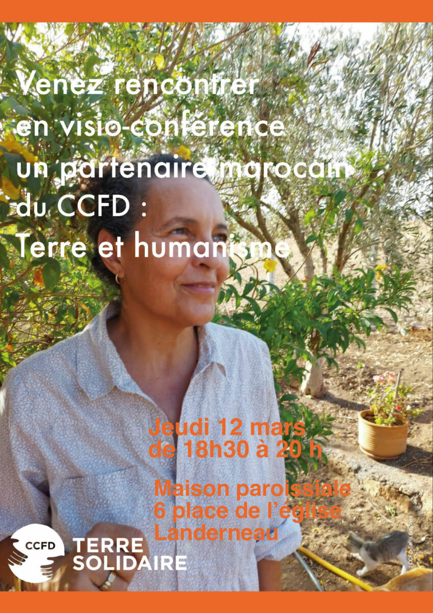 Dans le cadre de ses activités de Carême 2026, le Comité Catholique contre la Faim et pour le Développement-Terre Solidaire invite à une rencontre exceptionnelle d’échange, par visioconférence, avec une association partenaire du C.C.F.D.-Terre Solidaire, depuis le MAROC.