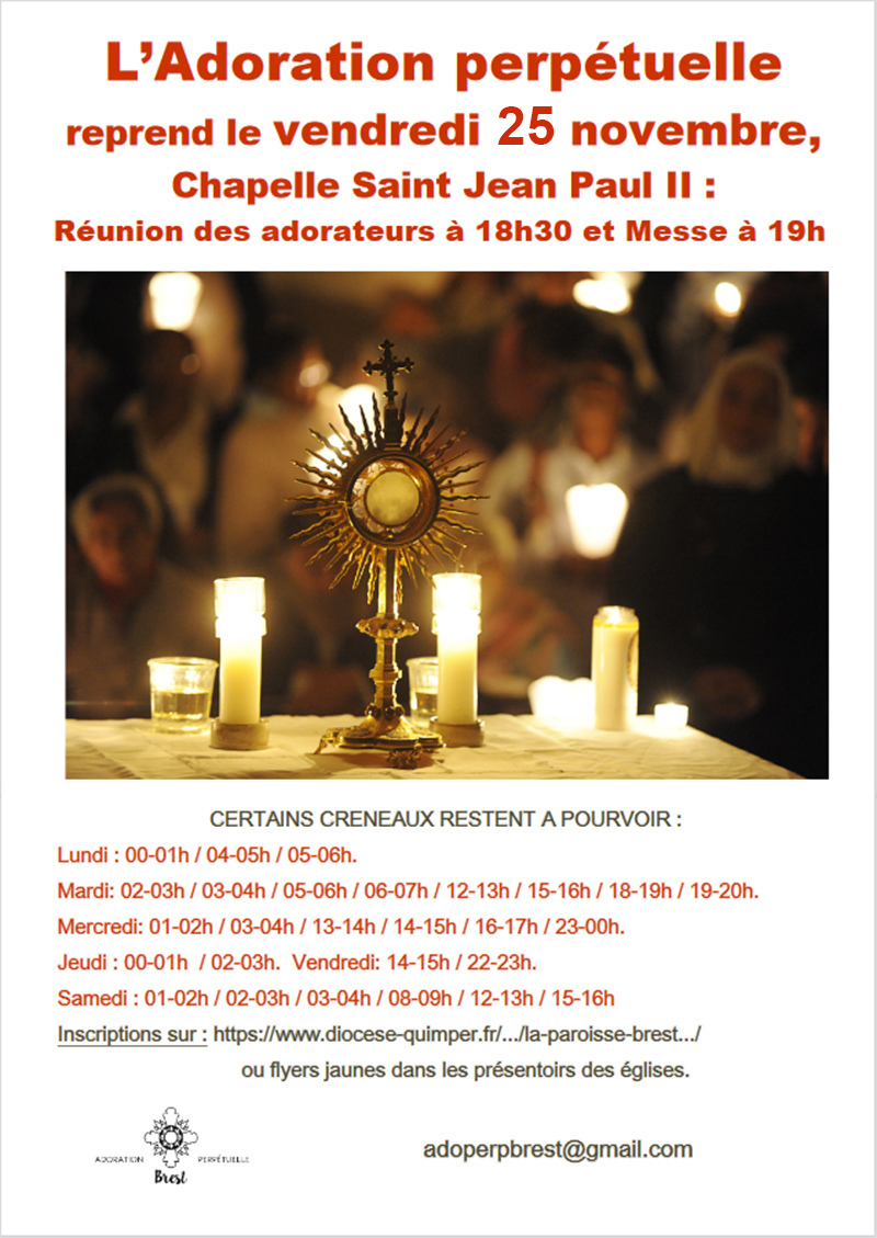 L’Adoration perpétuelle reprend le vendredi 18 novembre,