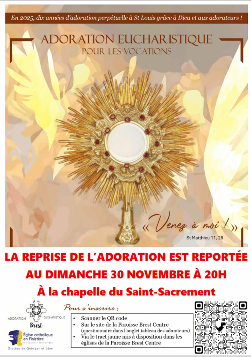 L’Adoration perpétuelle reprendra le dimanche 30 novembre.