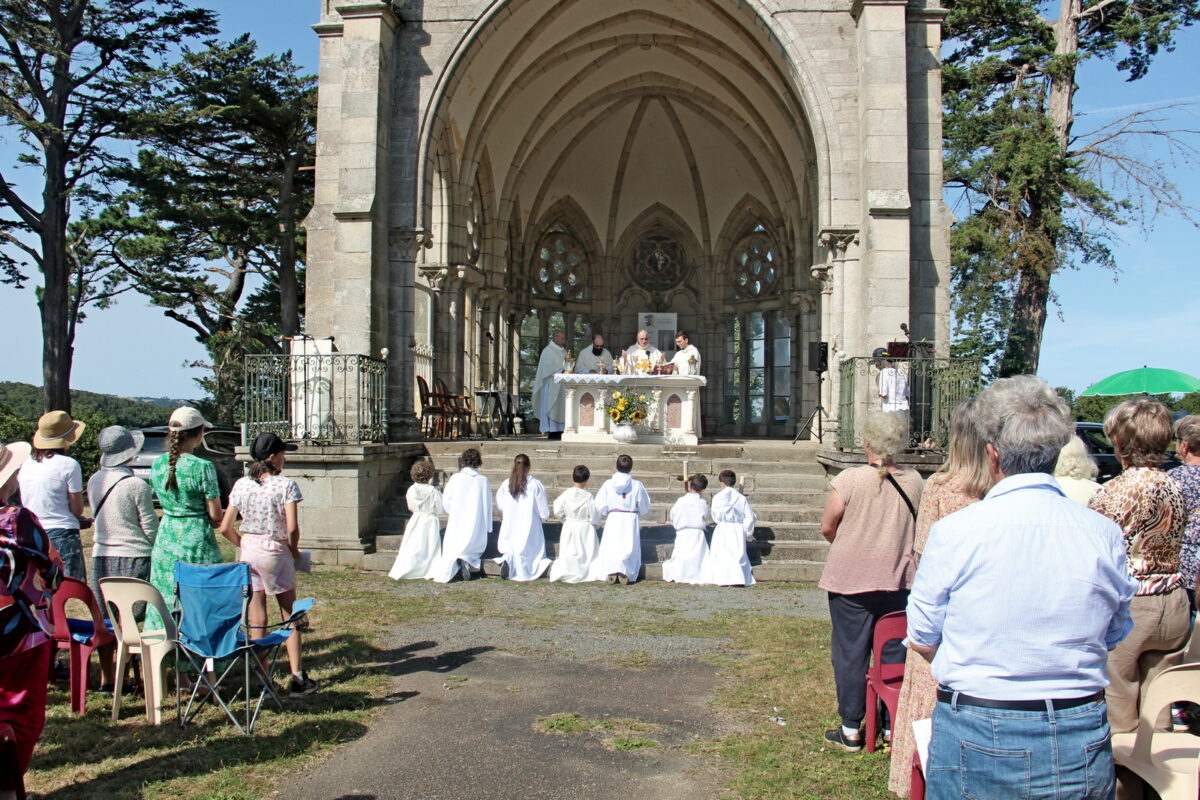 C’est bien ce qui expliquait l’affluence dans notre sanctuaire marial, tant le 14 que le 15 août. Pour la grand-messe en français, le curé était assisté du Père Alain Auffret, prêtre en retraite à Dirinon, ainsi que du Padre Juan, un prêtre péruvien (ancien collaborateur du pape Léon XIV en vacances en Bretagne), tandis que le Père Nestor, prêtre sénégalais, assurait les confessions tout au long de la matinée. Car l’origine des fêtes du « pardon » c’est bien de se réconcilier avec Dieu et ses frères ! Dans son homélie, le curé a rappelé que la Vierge-Marie est « 1ère de cordée » : si elle est montée au ciel « en son âme et en son corps », ce n’est pas pour être séparée de nous, mais bien au contraire pour nous ouvrir le chemin. A nous d’être accrochés à elle par la prière, notamment le chapelet, qui nous relie les uns aux autres, comme le fil du chapelet relie les grains les uns aux autres. Ainsi reliés à Marie qui nous précède au ciel, nous irons avec elle dans la joie éternelle de Dieu.
