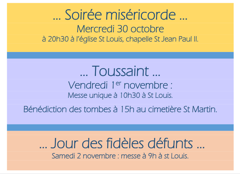 Accueil - Soirée Miséricorde le 30 octobre et horaires pour la Toussaint