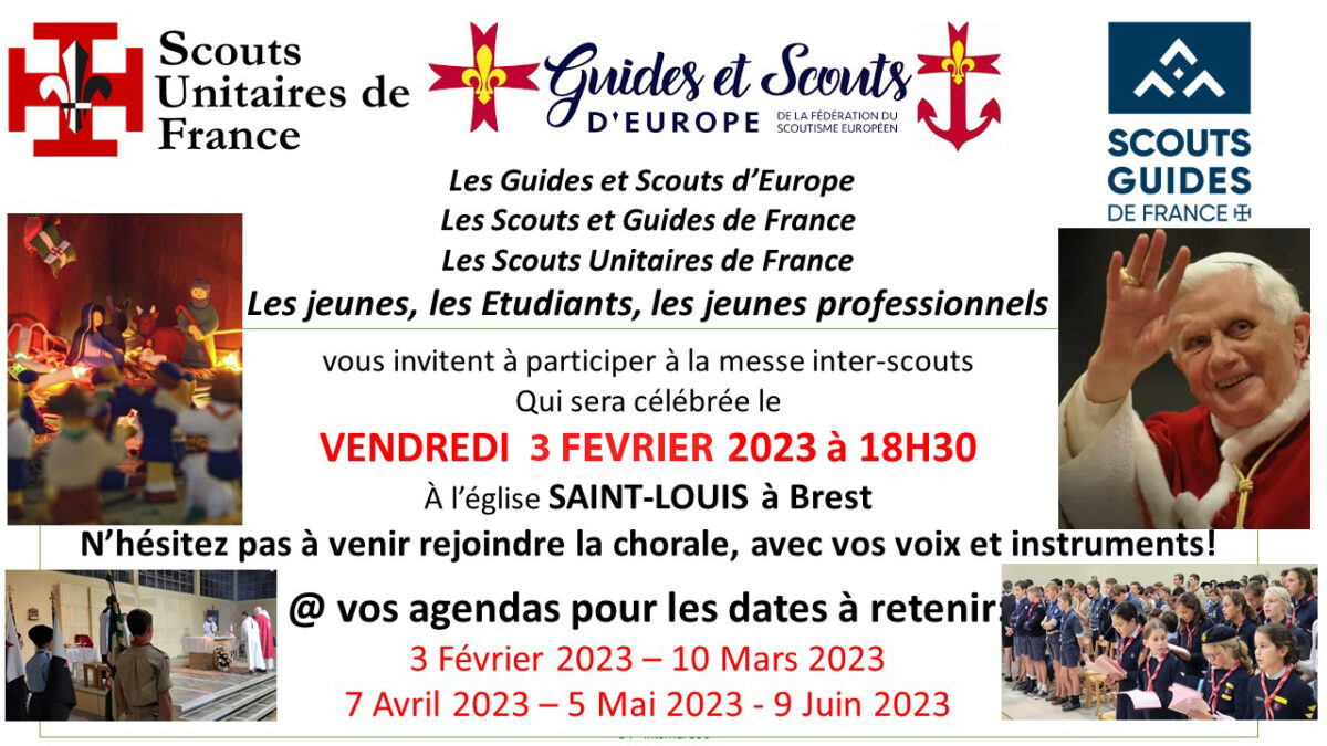 Nous nous retrouverons à St Louis, à la suite de la messe inter scoute.