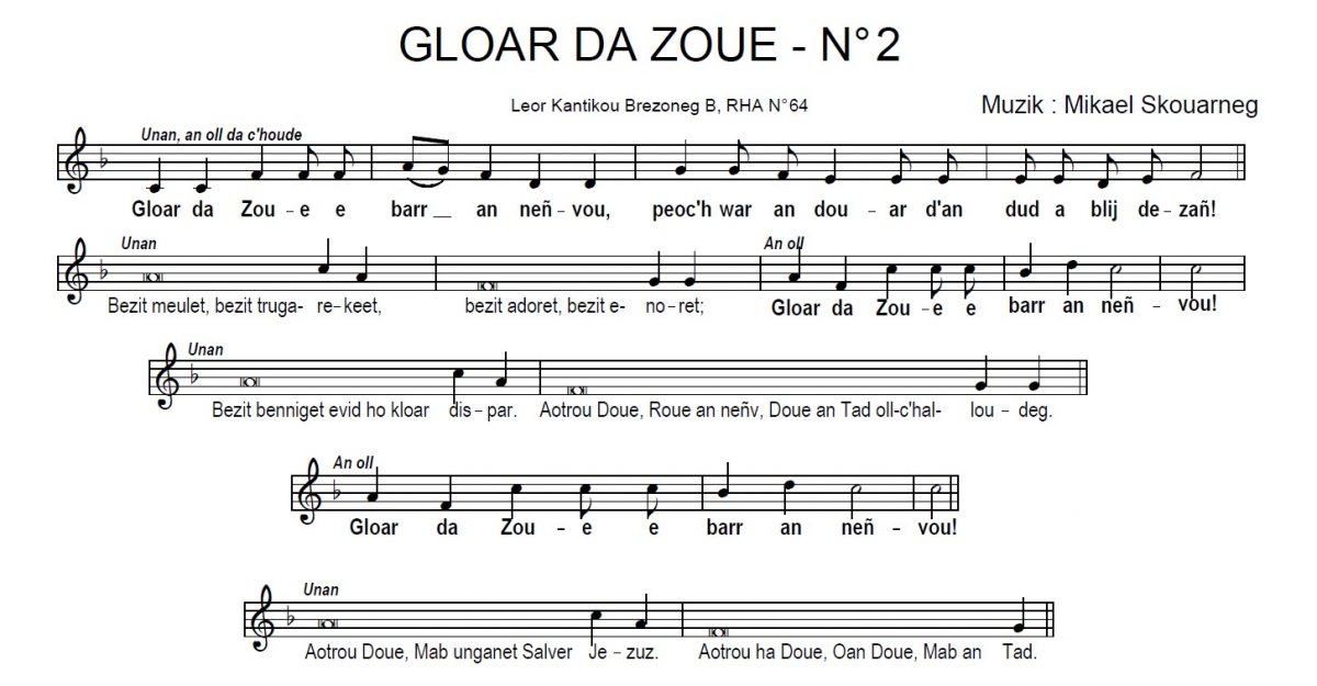 Eur c’hantik ofisial a zo evid kana ar GLORIA e-pad an overennou, gand ar c’homzou klog !