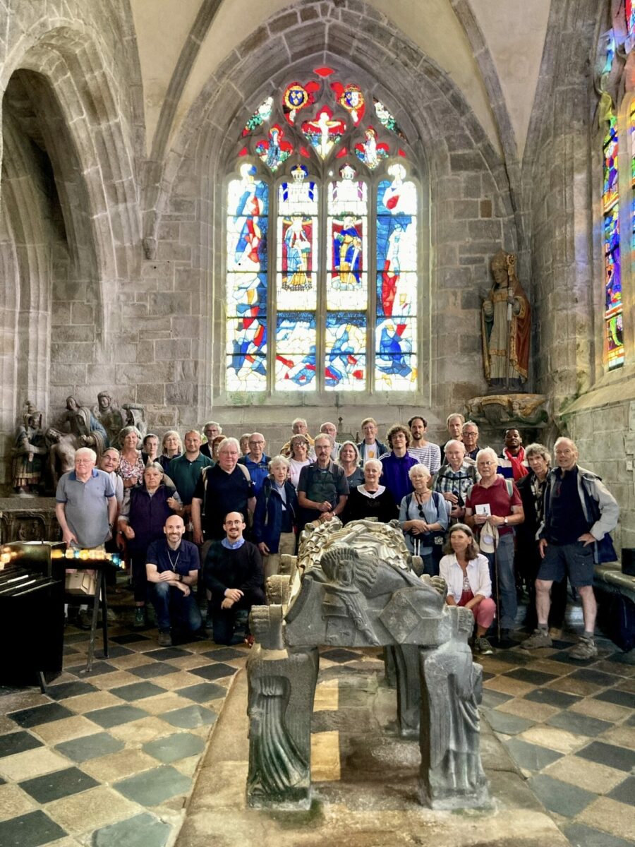 La plus grande partie du groupe s’est retrouvée de nouveau à l’église près du gisant de saint Ronan pour la bénédiction finale suivie de la photo de groupe. Nous édions invités à faire une prière à la Vierge Marie auprès de l’autel dédié avant de quitter l’église. Ce fut un beau pèlerinage, de quoi reprendre courage et forces pour notre vie quotidienne.