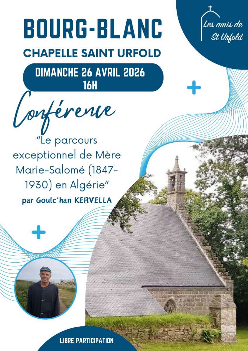 Les Amis de Saint Urfold organisent une conférence de Goulc’han Kervella sur la vie de Mère Marie Salomé dimanche 26 avril à 16 h à Bourg Blanc, Chapelle Saint Urfold.