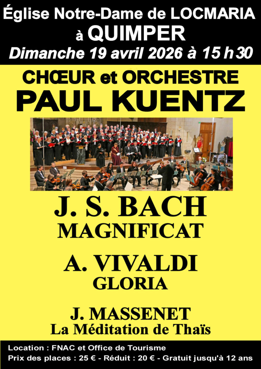 Il donne à Quimper un concert avec une pièce majeure pour violon solo : la « Méditation de Thaïs » de Jules Massenet et deux œuvres chorales d’envergure : le Gloria d’Antonio Vivaldi et le Magnificat de Jean-Sébastien Bach.