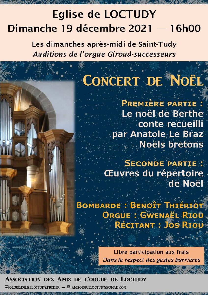 C’est l’un de ces contes que Benoît Thiériot à la bombarde, Gwenaël Riou à l’orgue et Jos Riou, récitant ont choisi pour la première partie de ce concert de noël. Ils vous proposeront de découvrir le noël de Berc’hed, une jeune fille qui naquit sans bras et qui assista à la naissance de Jésus. Berc’hed est une déesse celte liée à la maternité et christianisée par assimilation avec Sainte Brigitte d’Irlande.