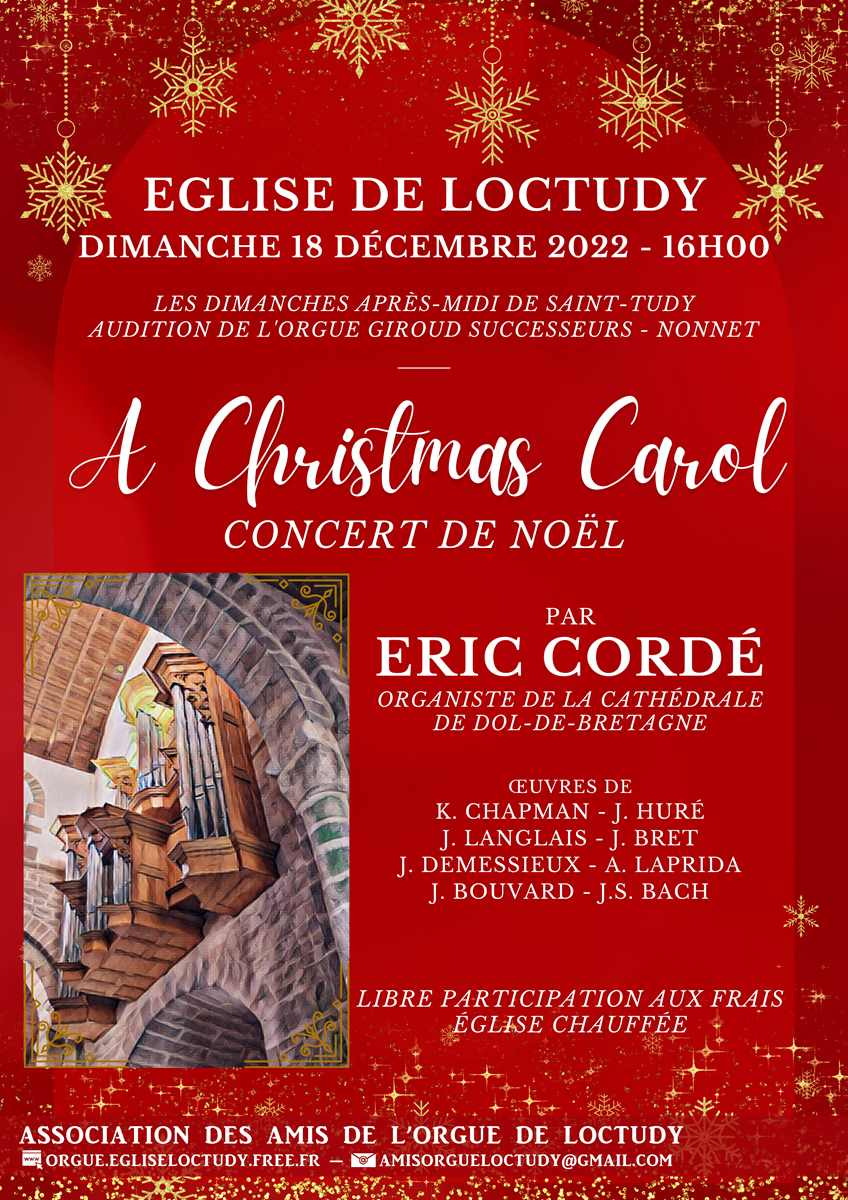 Eric Cordé a choisi d’intituler ce concert « A Christmas Carol » en référence à la tradition anglaise qui voit en cette période de fin d’année de nombreux concerts et autres manifestations musicales organisées autour du répertoire musical de Noël (chants, pièces instrumentales…).