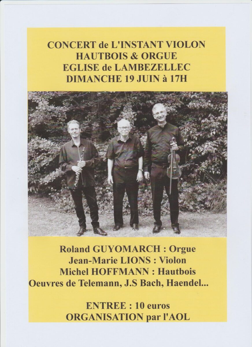 Ce concert en trio violon, hautbois et orgue interprètera des œuvres baroques de Haendel, J.S Bach et Telemann