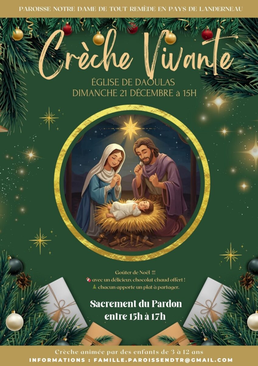 Les enfants mais aussi les parents et grands-parents sont invités à venir à l’église de Daoulas le 21 décembre 2025 à 15h00 assister à la représentation de Noël, « Crèche Vivante » jouée par des jeunes de 3 à 12 ans.