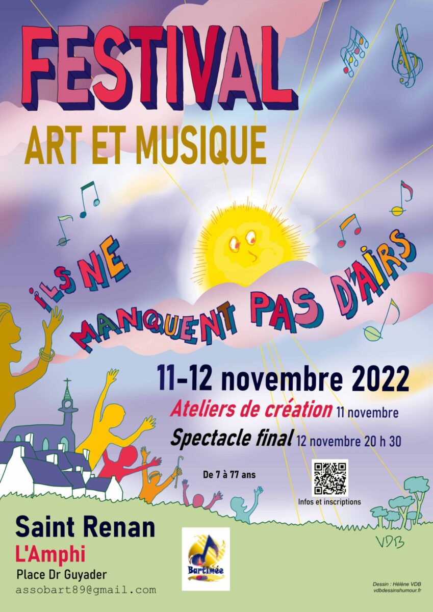 Après plus de deux années de limitation des relations sociales, l’association Bartimée propose à toutes personnes de 7 à 77 ans de se retrouver pour son festival autour de l’art et de la musique. Puisque le virus a atteint avant tout les voies respiratoires, puisque le masque est devenu un symbole de cette crise, puisque le chant est un bon moyen de partager notre bonne humeur, puisque l’Esprit se manifeste comme un souffle, le thème de ces jours est « ils ne manquent pas d’airs ».