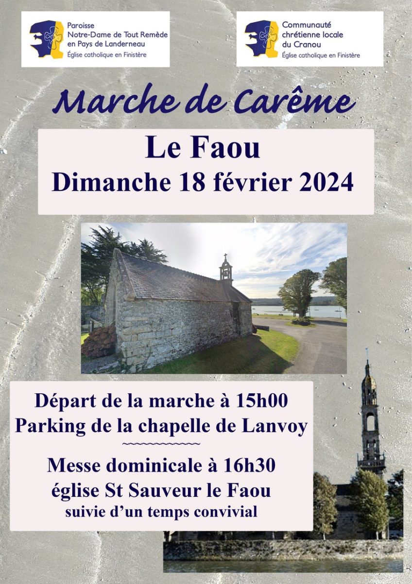 Première marche de Carême 2024 sur le Faou dans la communauté du Cranou, le rendez-vous est donné le dimanche 18 février à 15h00 sur le parking de la chapelle de Lanvoy.