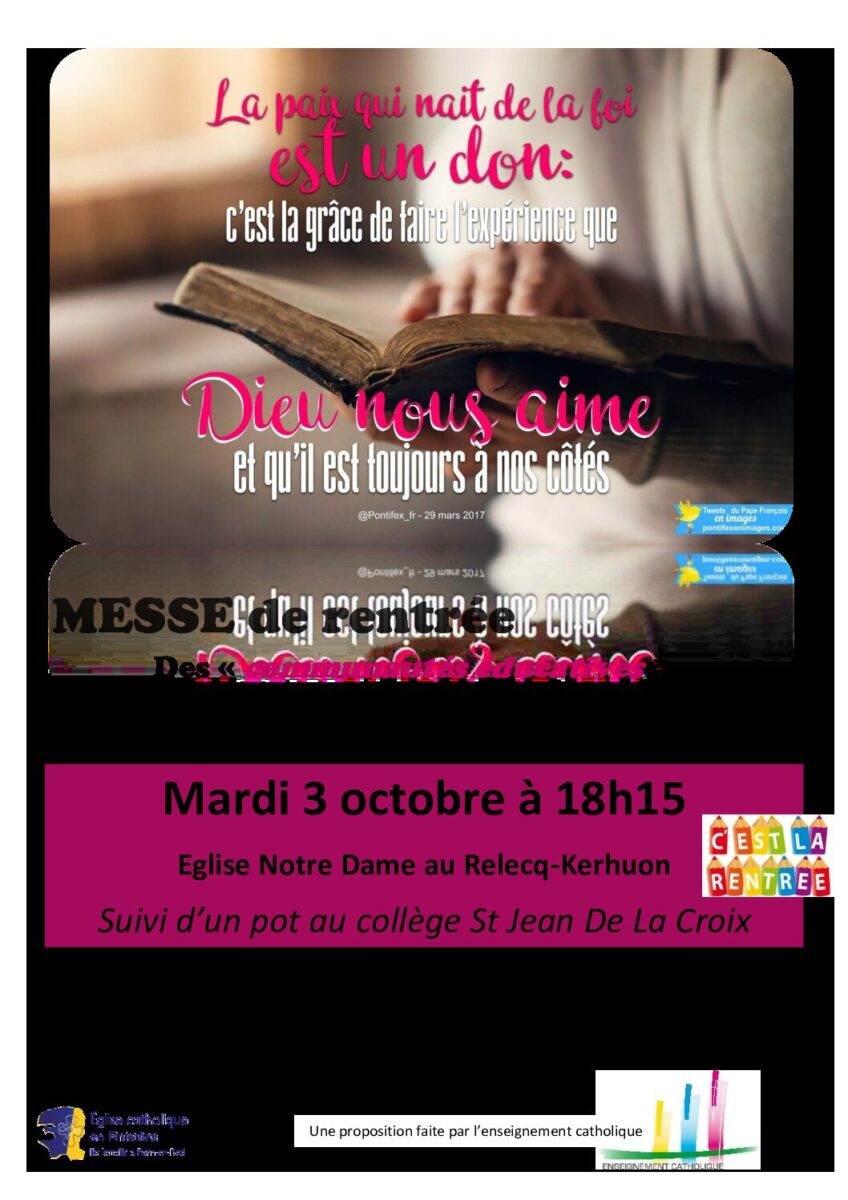 Un pot sera servi au collège Saint Jean de la Croix à l’issue de la messe.