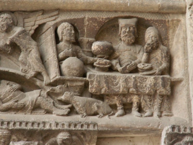 Curieusement, dans cette parabole, le pauvre a un nom : Lazare, mais le riche n’en a pas. Tous deux meurent, et saint Luc accentue encore la différence entre eux. Le pauvre est emporté par les anges auprès d’Abraham, et le riche est tout simplement enterré. Une élévation et une exaltation pour le pauvre, et la poussière du néant pour le riche.
