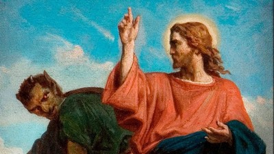 Saint Marc présente Jésus comme réalisant la promesse de Dieu à Moïse et se levant au milieu de ses frères en humanité. Une belle expression ! Comme les prophètes qui l’ont précédé, il appelle à la conversion, il démasque et dénonce la présence et l’action des esprits mauvais en l’homme, il annonce le salut de Dieu. Cependant, il est plus qu’un intermédiaire entre Dieu et son peuple, comme les prophètes qui l’ont précédé ou les scribes qui enseignent la Loi. La venue du règne de Dieu est à l’œuvre en sa personne. Saint Marc se contente de mentionner la tentation de Jésus au désert en son Évangile : « durant 40 jours, au désert, il fut tenté par Satan », se contente-t-il d’écrire. C’est quelques versets plus loin qu’il raconte le premier épisode de son combat contre l’esprit mauvais. C’est son premier miracle, le premier signe qu’il pose. Après avoir affronté Satan au désert, il l’affronte dans une synagogue, au cœur d’une assemblée de prière et d’une célébration de la Parole.