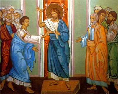 Après le don de la paix, vient l’envoi en mission qui lui aussi est un don du Ressuscité et un témoignage à rendre à sa résurrection. Le rencontrer et le reconnaître c’est poursuivre son œuvre, ne pas la laisser mourir. Même si la peur les tenaille, comme le Père l’a envoyé il les envoie affronter le mal à l’œuvre dans le monde. Faire front contre les esprits mauvais, comme il l’a fait lui-même dans son histoire humaine. Ainsi, croire en la résurrection ce n’est pas bénéficier d’une information ou adhérer à un dogme, c’est engager tout son être dans un combat pour la vie, contre le mal et la haine, contre tout ce qui rend l’homme esclave, dans son être, dans le monde où il vit, dans la religion qui est la sienne, dans son athéisme s’il est incroyant. C’est recevoir une puissance spirituelle de dénonciation du mal là où il règne. C’est de réconcilier ceux qui sont divisés là où ils nourrissent les guerres, de guérir ceux qu’accablent les souffrances du cœur et du corps. Cependant ils n’étaient que dix. Judas avait trahi, et Thomas était absent.